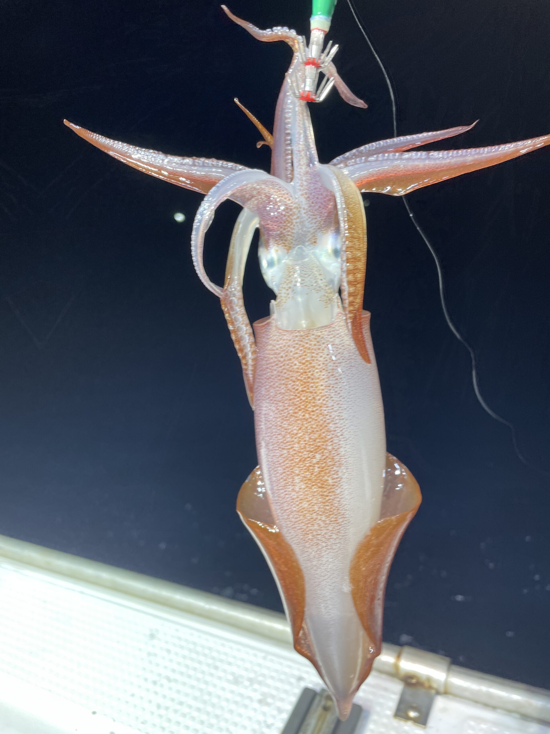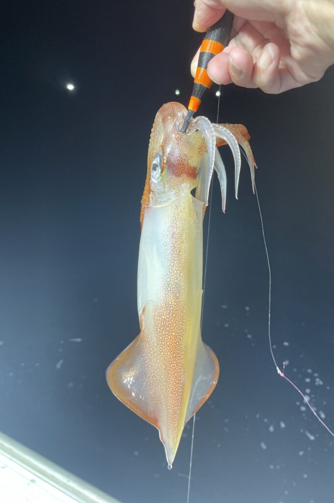 ほぼ1.8号のドロッパ側に食ってきましたが小型イカが多く、これかと思い2.5号に切り替えた途端に中型以上にサイズアップ、ここまで違うのかと痛感しました。次回あれば3号以上でやってみます。